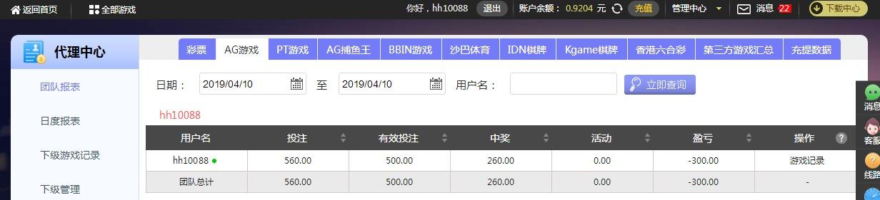 [|输单补偿] 4月10日摩臣亏损300 |
