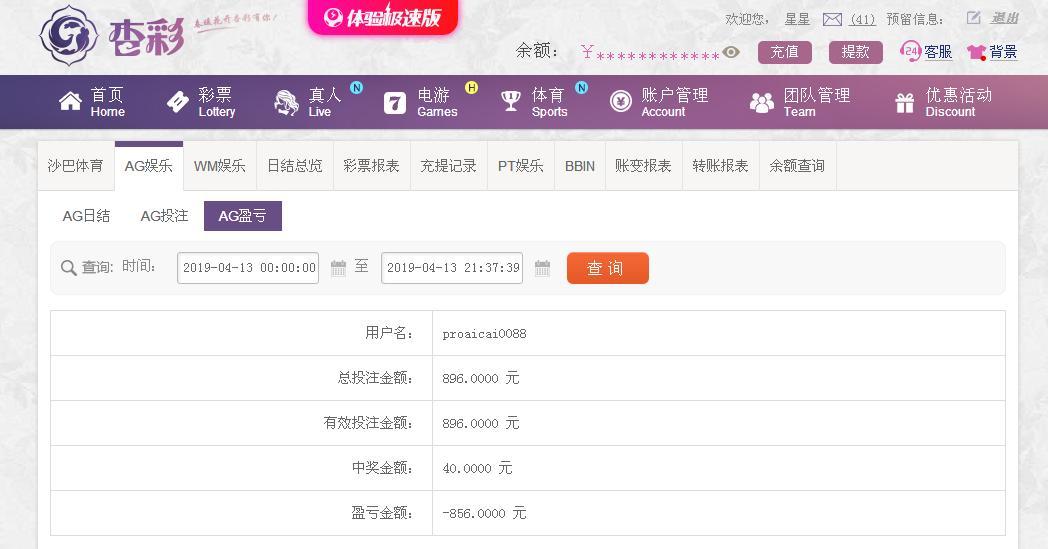 [|输单补偿] 4月13日杏彩亏损856元 |
