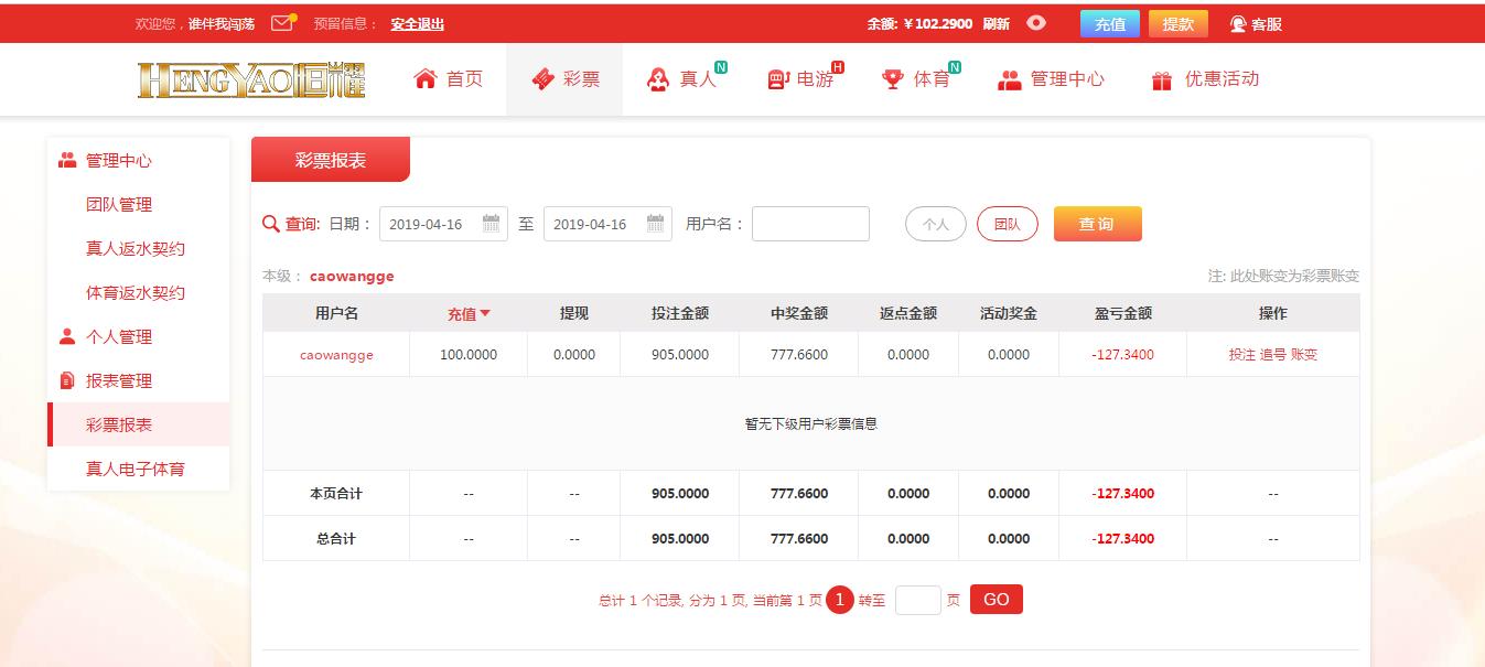 [|输单补偿] 04月16日在恒耀平台输127元 |