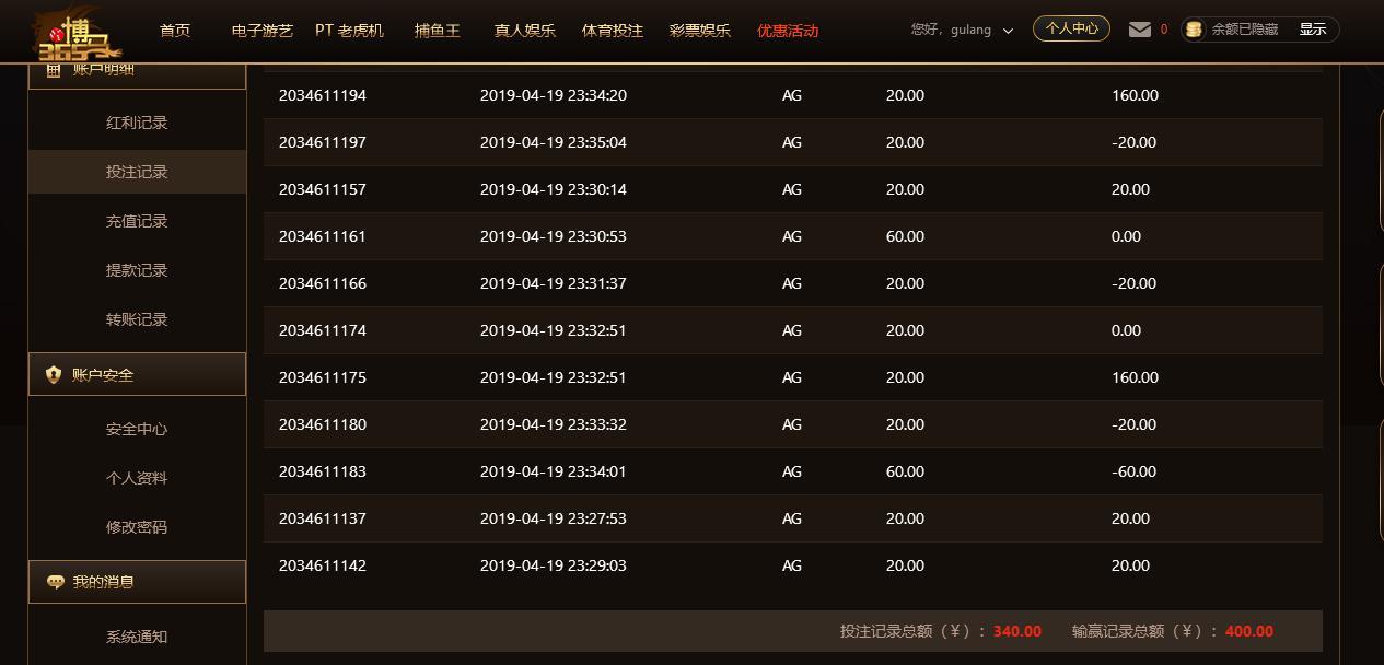 [|赢单奖励] 4月19日博马平台盈利400元 |