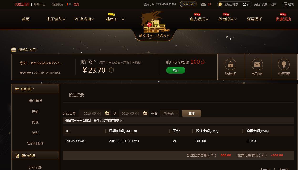 [|输单补偿] 5月4日博马亏损308元 |