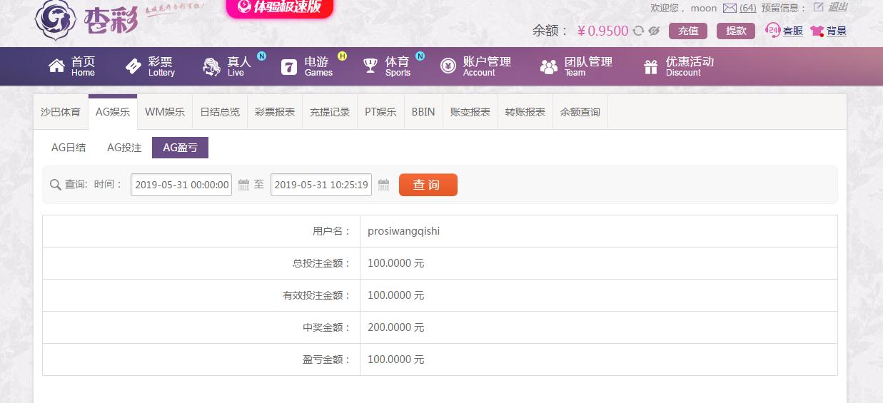 [|赢单奖励] 5月31日杏彩平台盈利100元 |