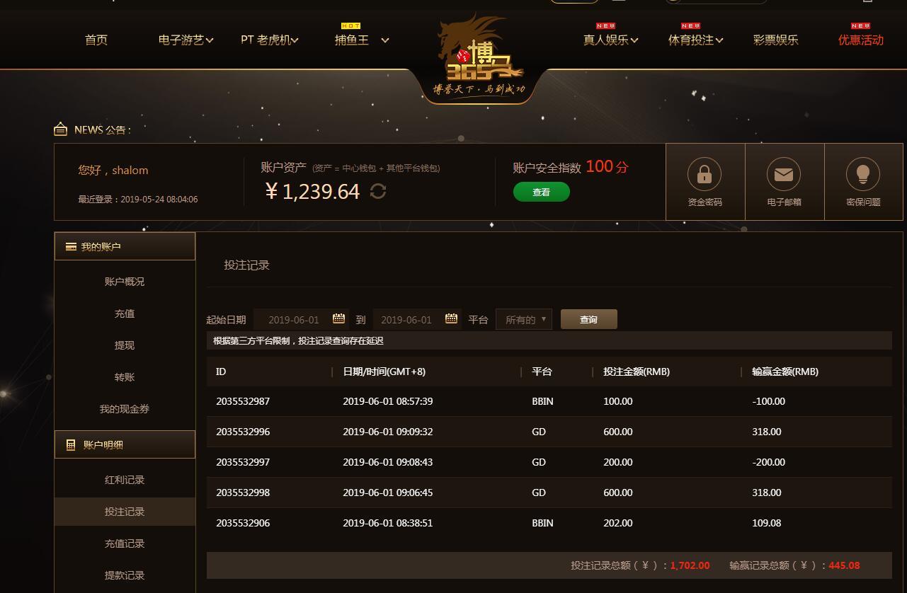 [|赢单奖励] 6月1日博马盈利445元 |
