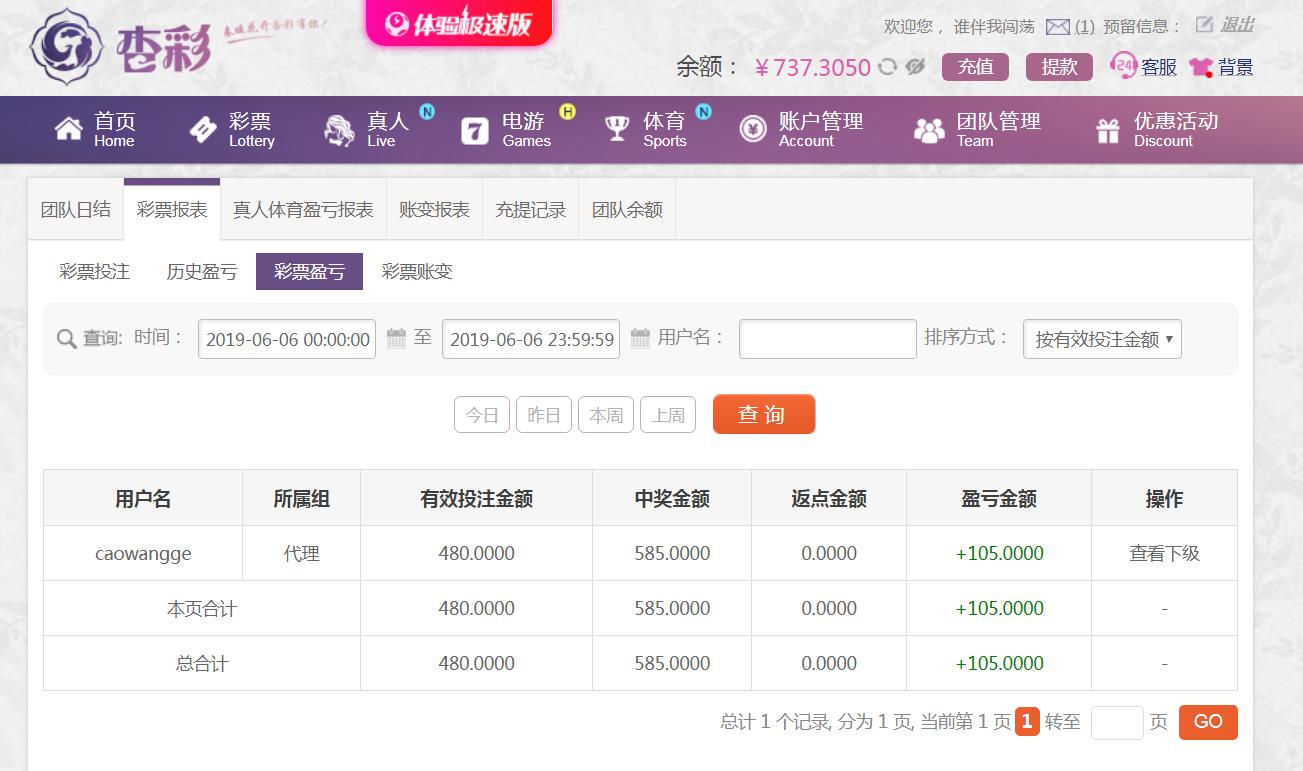 [|赢单奖励] 06月06日在杏彩平台赢105元 |