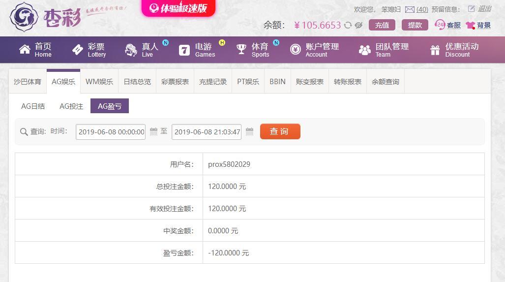 [|输单补偿] 6月8日杏彩平台亏损120元 |