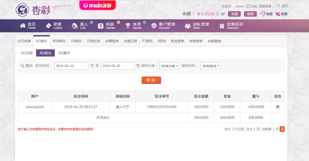 [|赢单奖励] 6月20日杏彩平台盈利100元 |