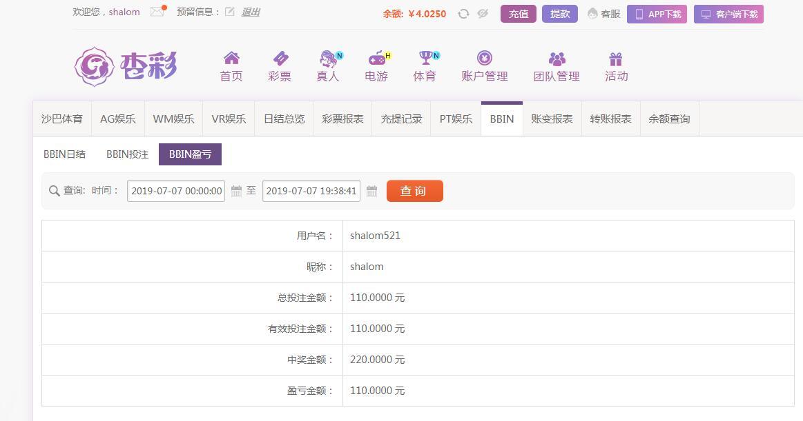 [|赢单奖励] 7月7日杏彩盈利110元 |