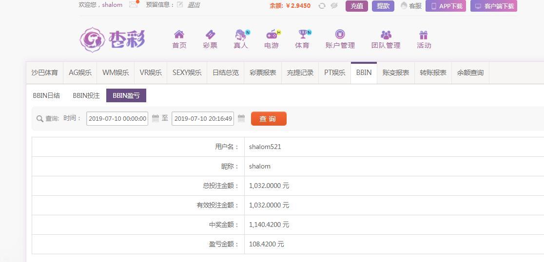 [|赢单奖励] 7月10日杏彩盈利108元 |