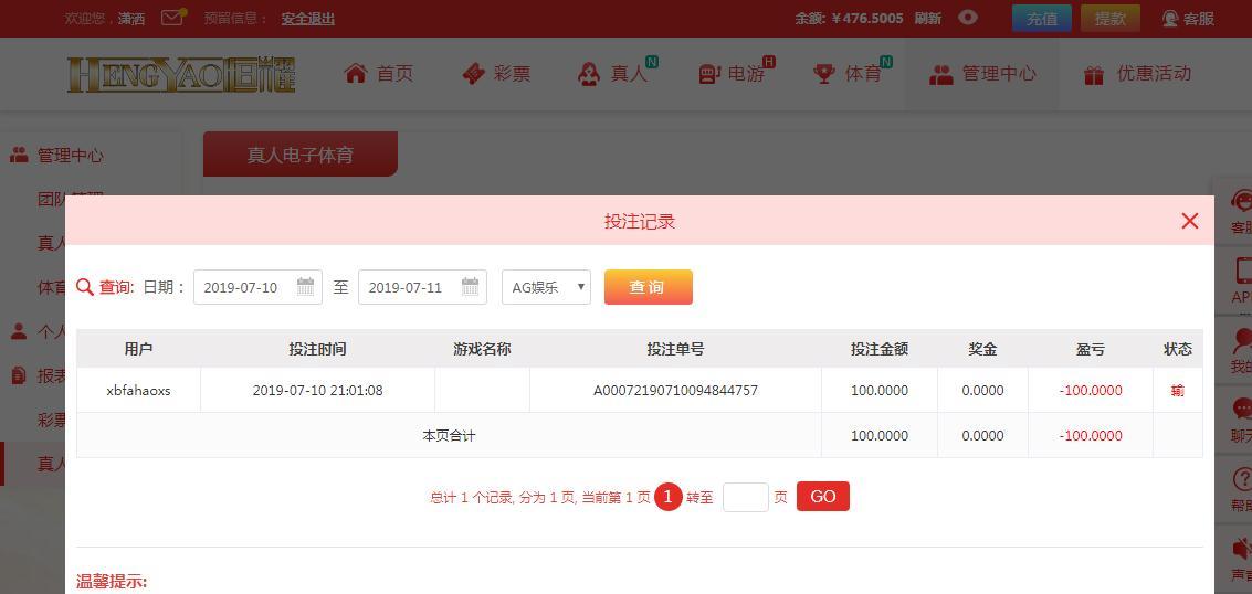 [|输单补偿] 7月10日恒耀输100元 |