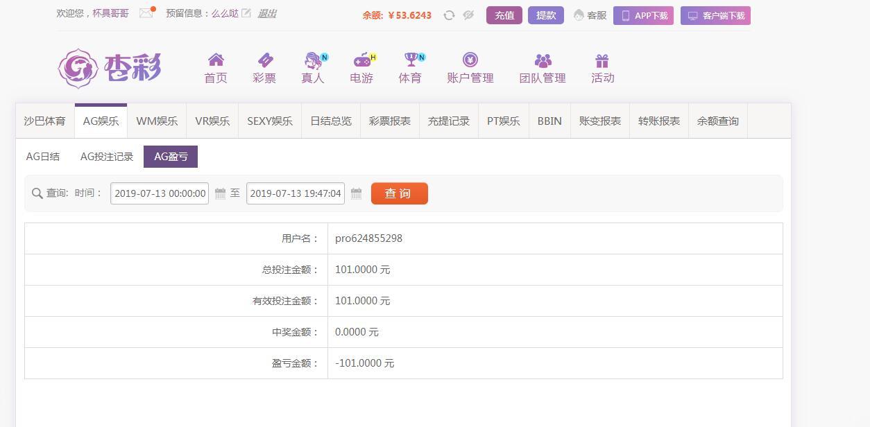 [|输单补偿] 7月13日杏彩亏损101 |