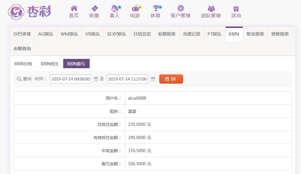 [|赢单奖励] 7月14杏彩盈利100元 |