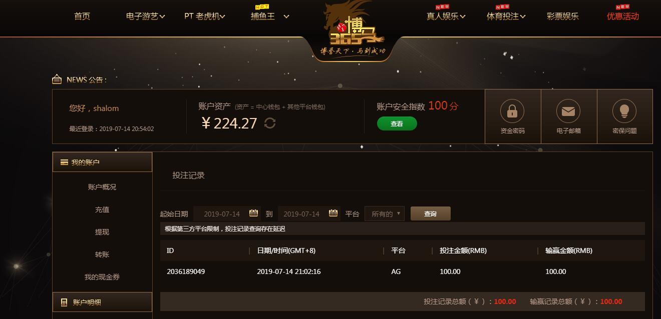 [|赢单奖励] 7月14日博马盈利100元 |