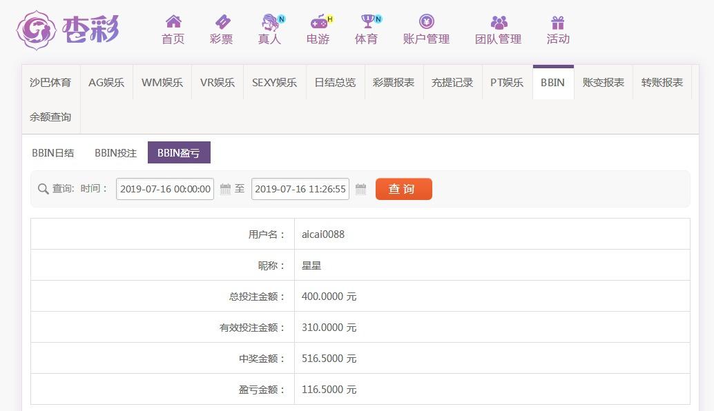 [|赢单奖励] 7月16杏彩盈利100元 |