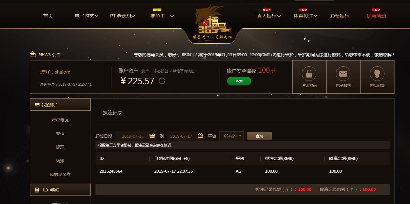 7月17日博马盈利100元