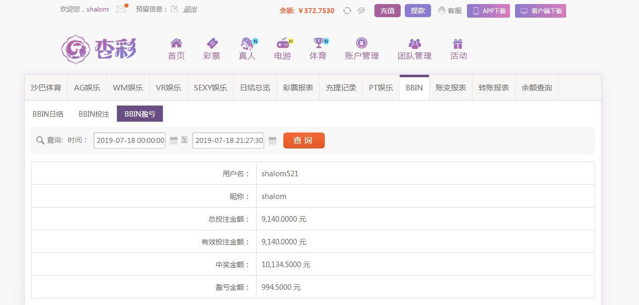 [|赢单奖励] 7月18日杏彩盈利994元 |