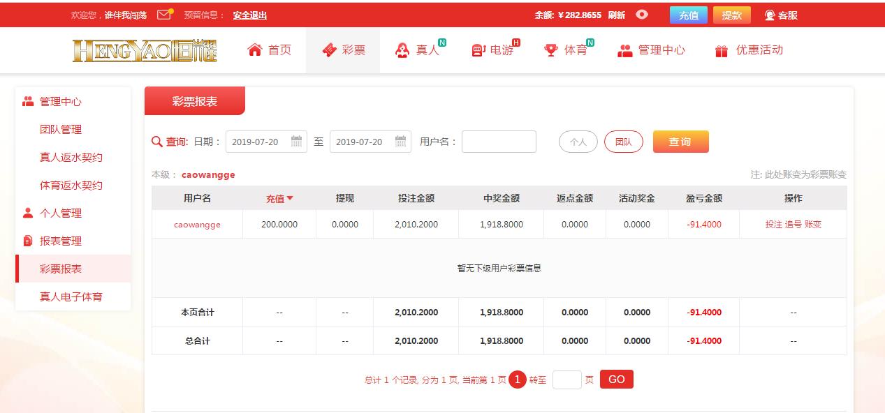 07月20日在恒耀平台输91元