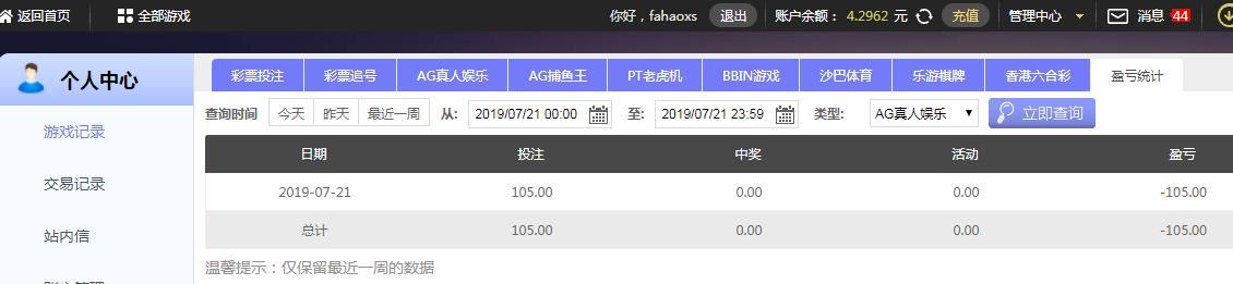 [|输单补偿] 7月21日摩臣输105元 |