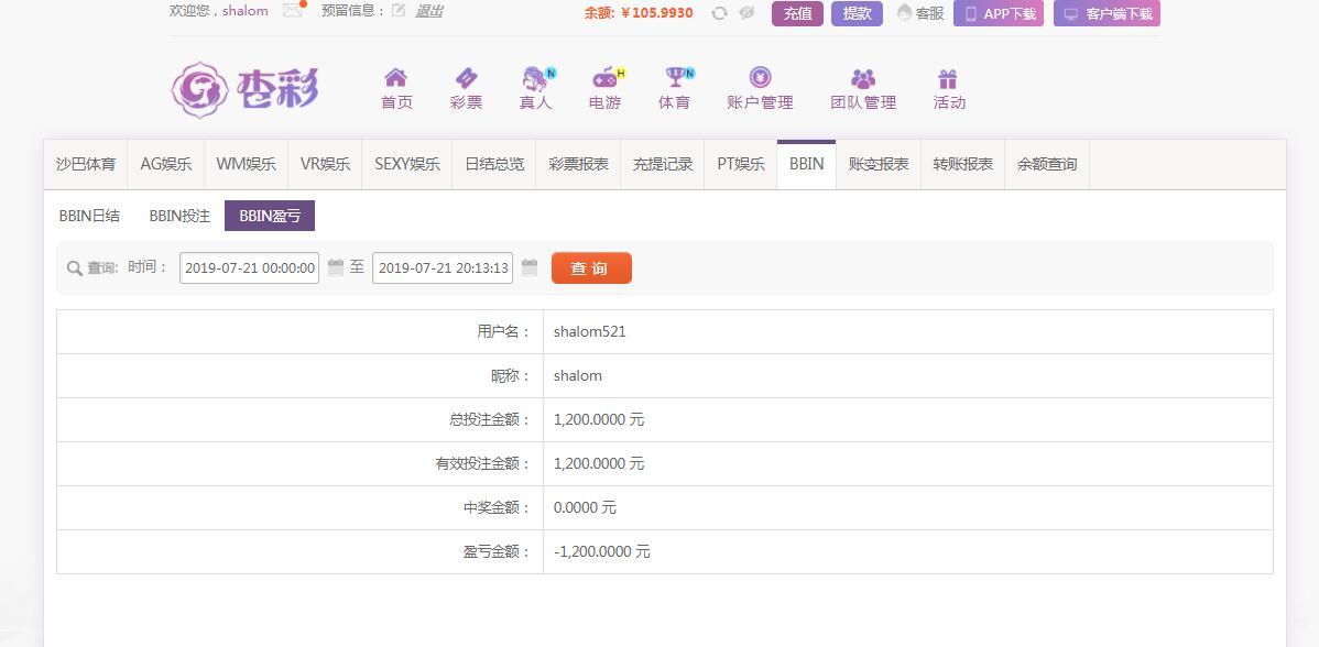 7月21日杏彩输1200元