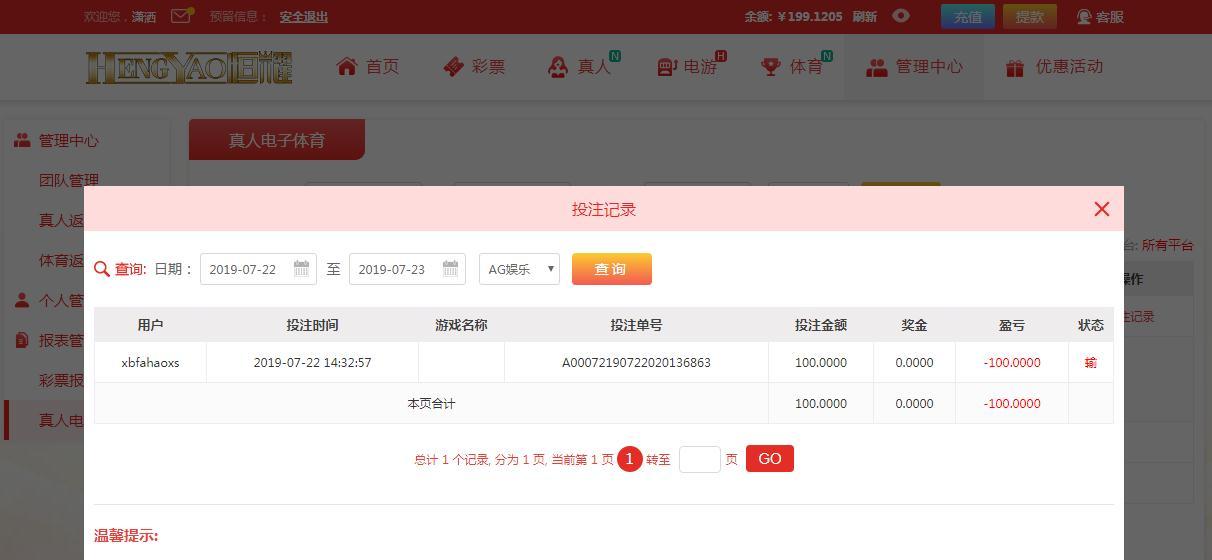 [|输单补偿] 7月22日恒耀输100元 |