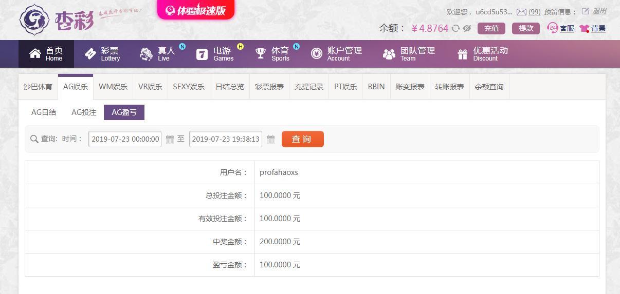 [|赢单奖励] 7月23日杏彩赢100元 |