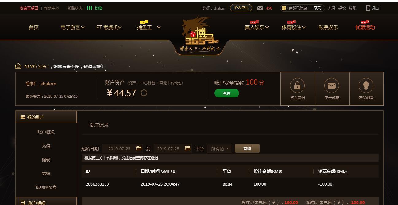7月25日博马亏损100元