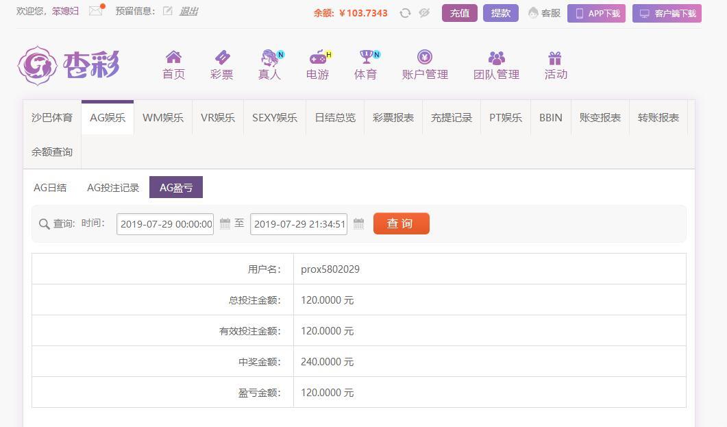 [|赢单奖励] 7月27日杏彩盈利120元 |