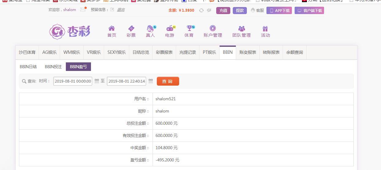 [|输单补偿] 8月1日杏彩输495元 |