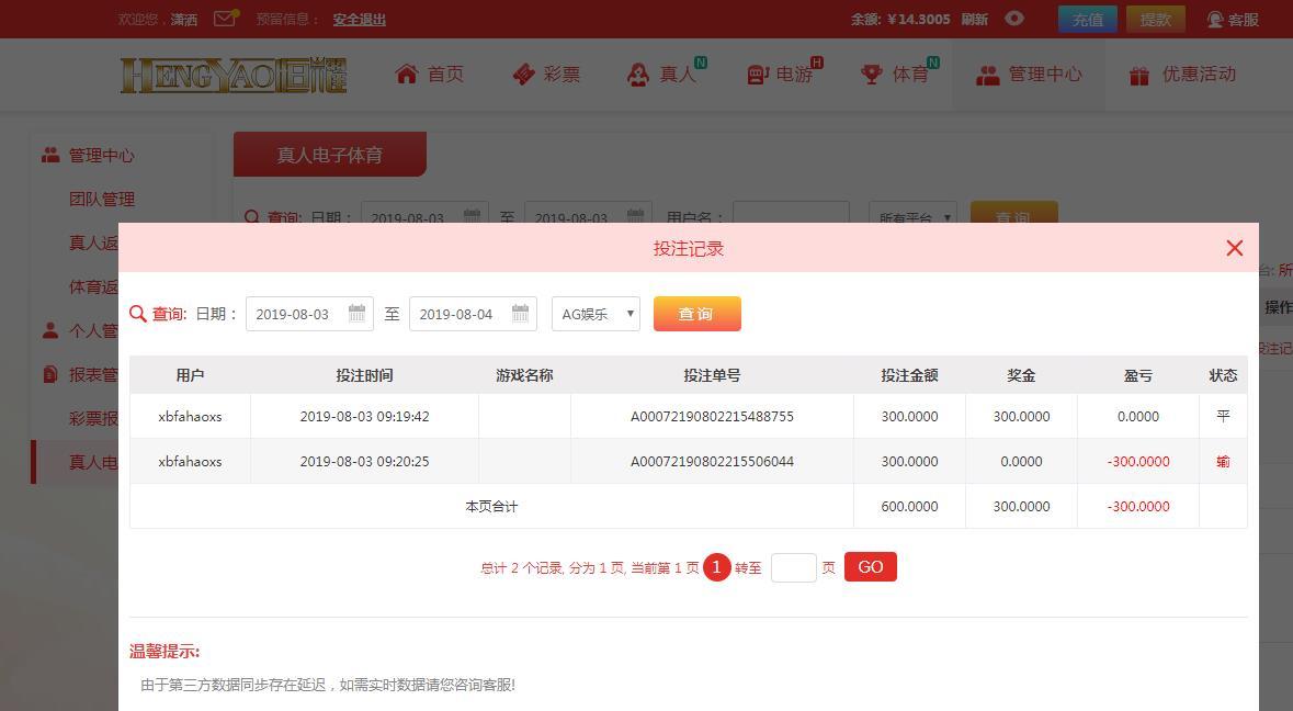 [|输单补偿] 8月3日恒耀输300元 |