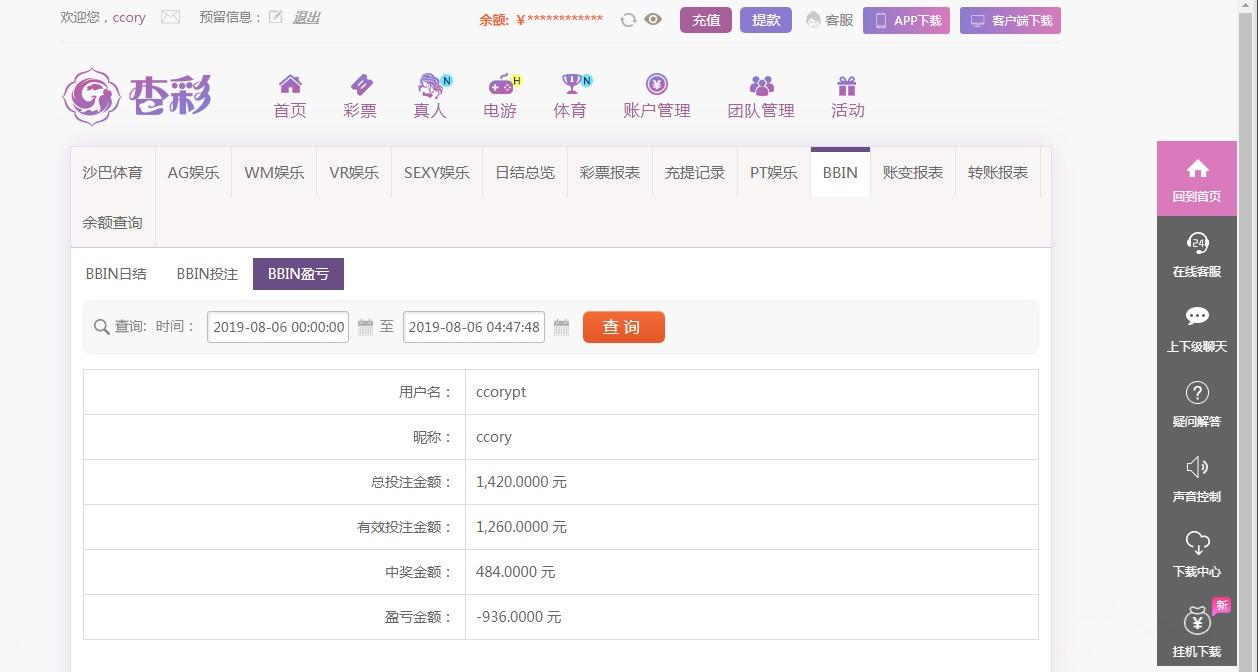 [|输单补偿] 8月6日杏彩BBIN亏损936元 |