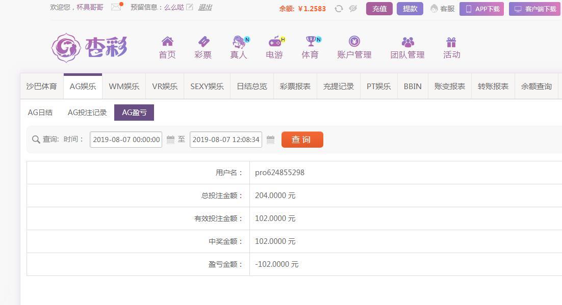 [|输单补偿] 8月7日杏彩亏损100 |