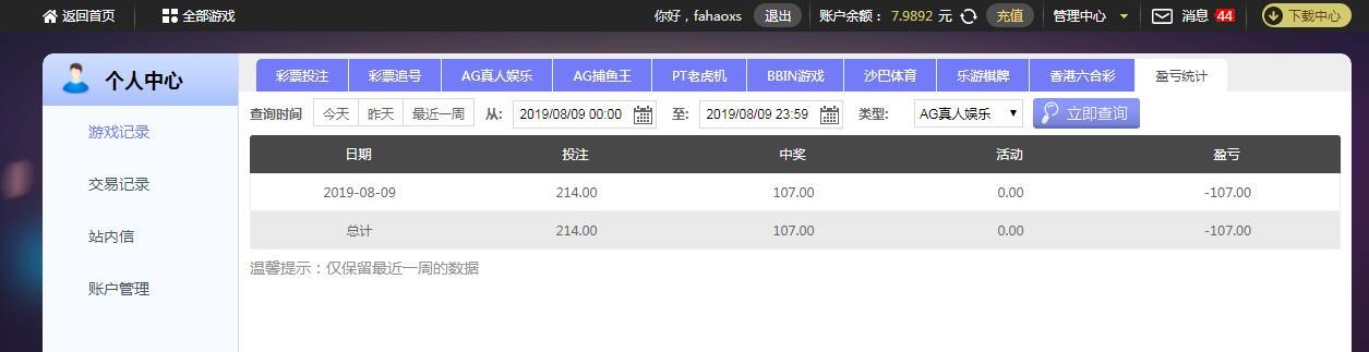 [|输单补偿] 8月9日摩臣输107元 |