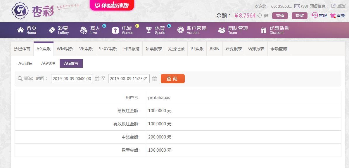 [|赢单奖励] 8月9日杏彩赢100元 |