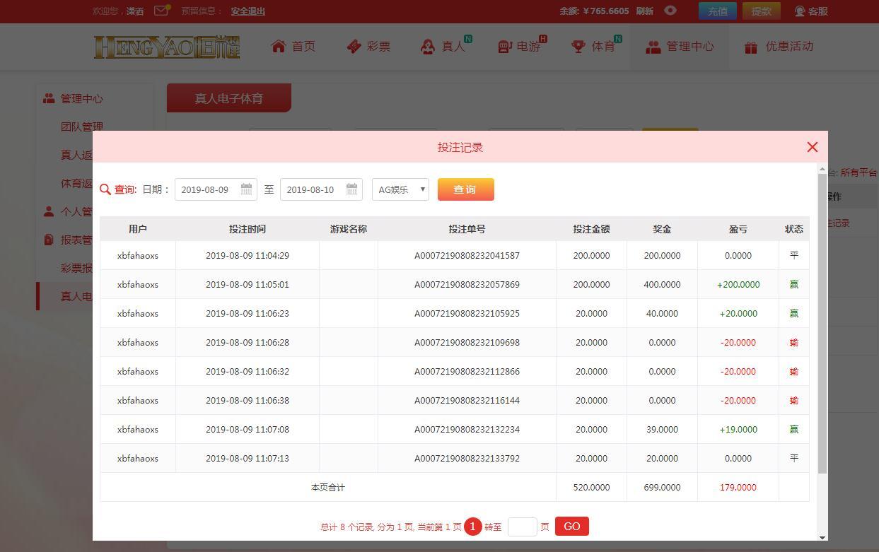 [|赢单奖励] 8月9日恒耀赢179元 |