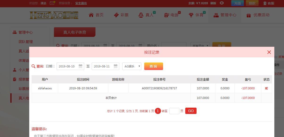 8月10日恒耀输107元