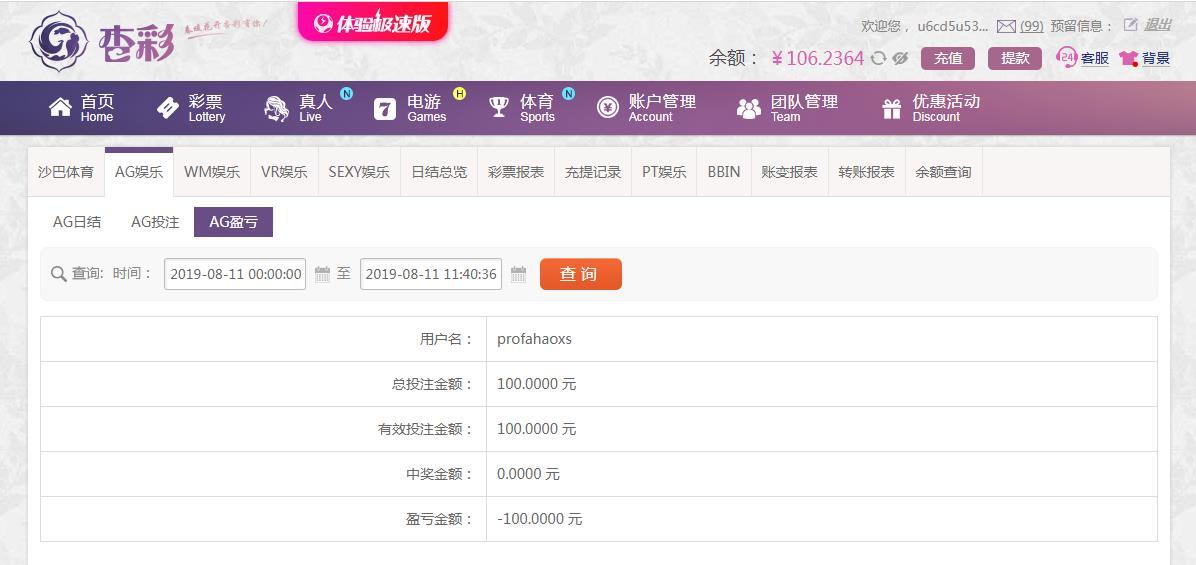 [|输单补偿] 8月11日杏彩输106元 |