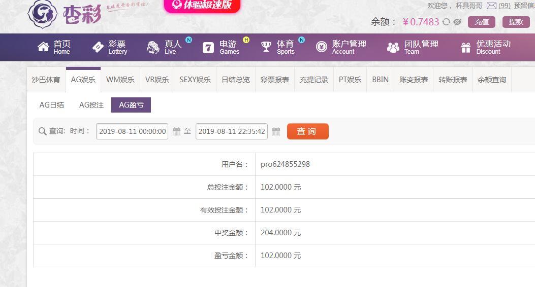 [|赢单奖励] 8月11日杏彩盈利130 |