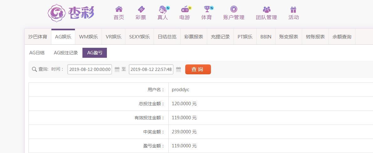 8月12日杏彩盈利100元