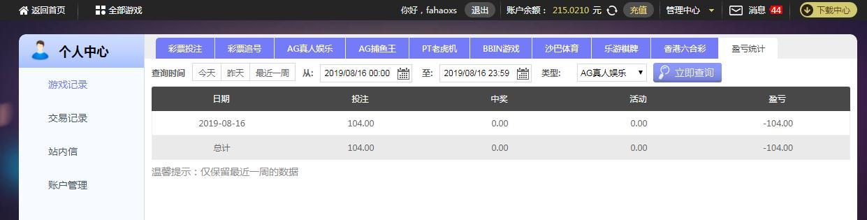 [|输单补偿] 8月16日摩臣输104元 |