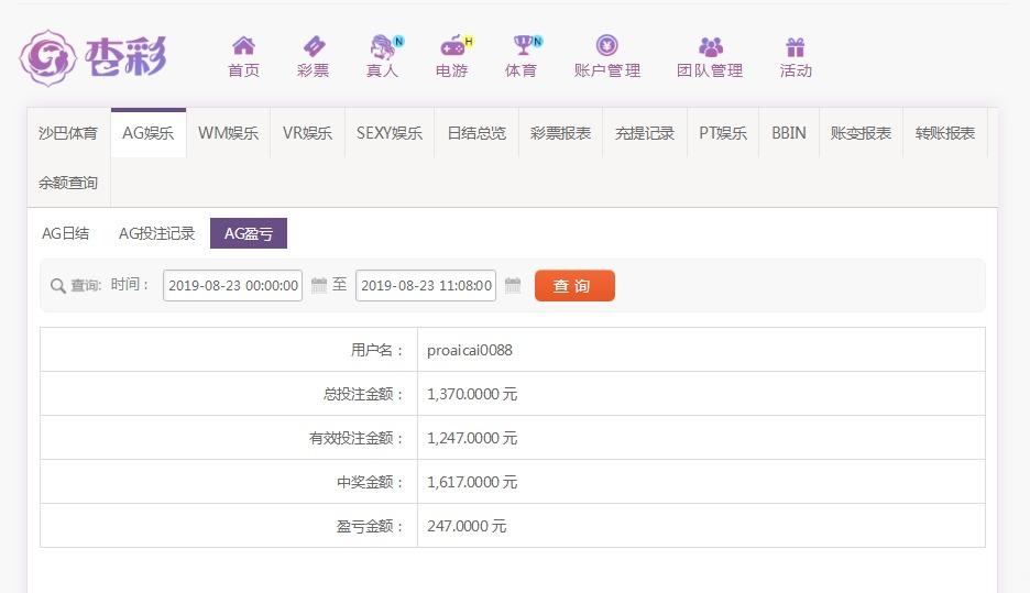[|赢单奖励] 8月23杏彩盈利100元 |