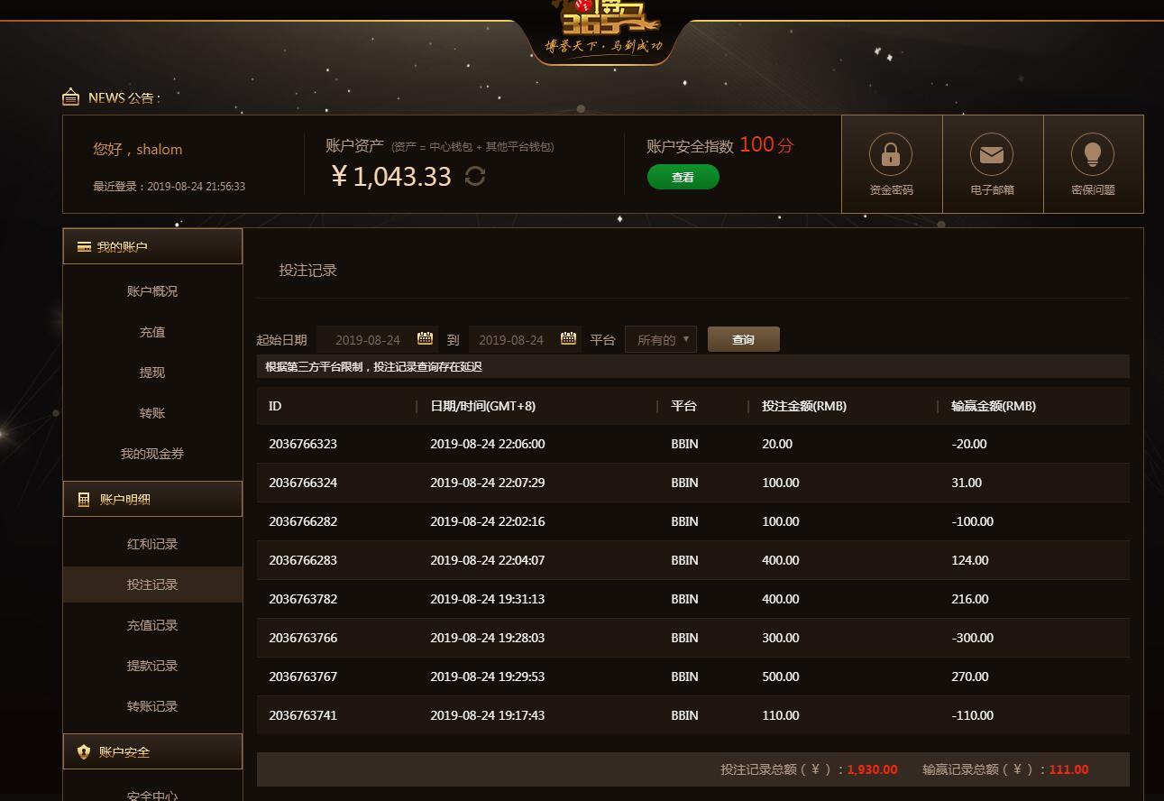 [|赢单奖励] 8月24日博马盈利111元 |