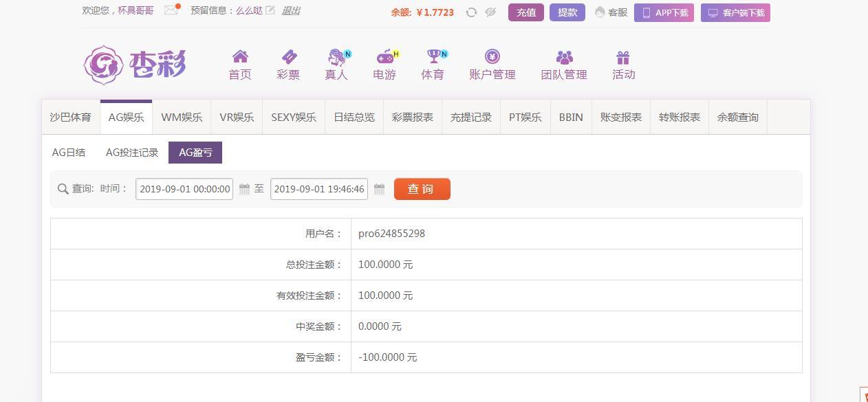 [|输单补偿] 9月1日杏彩亏损100 |