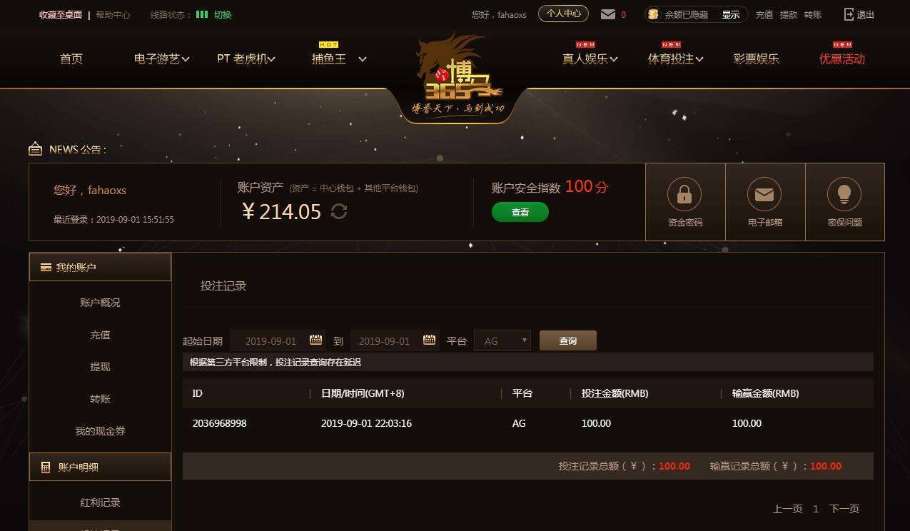 [|赢单奖励] 9月1日博马赢100元 |