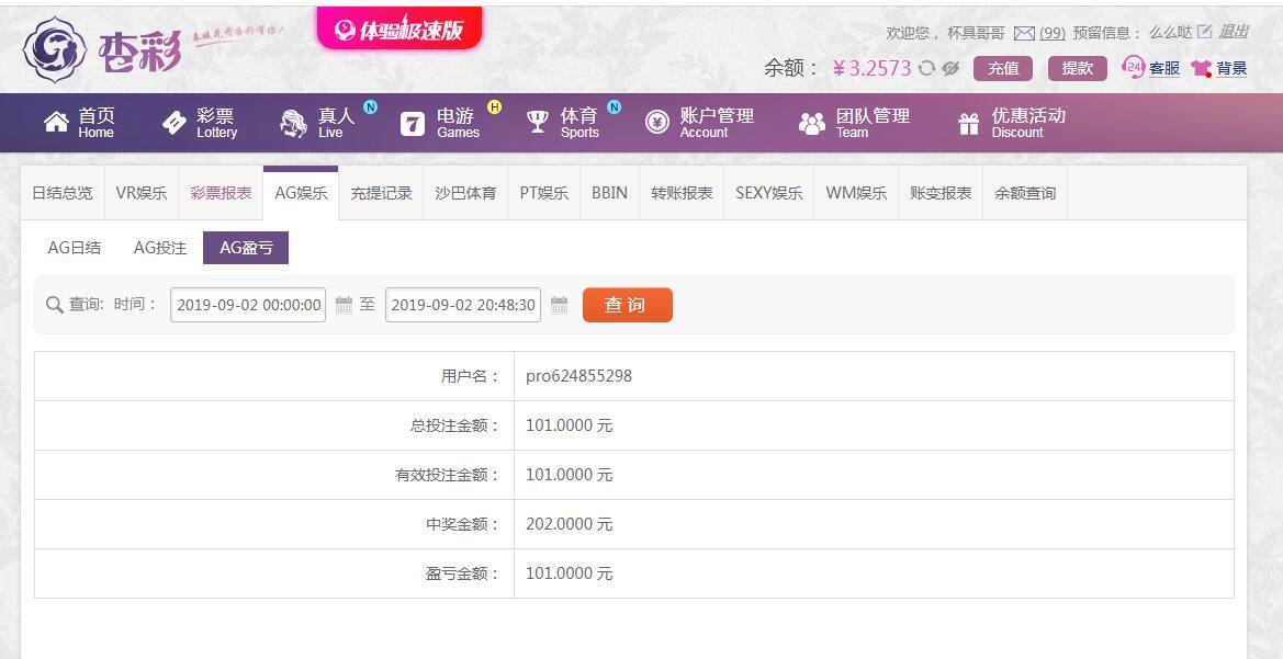 [|赢单奖励] 9月2日杏彩盈利100 |