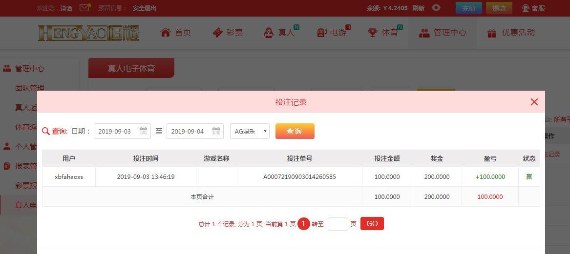 [|赢单奖励] 9月3日恒耀赢100元 |