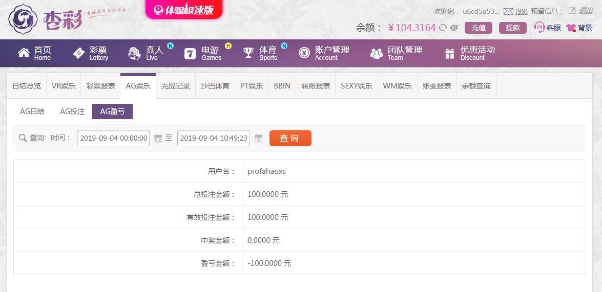 [|输单补偿] 9月4日杏彩输100元 |