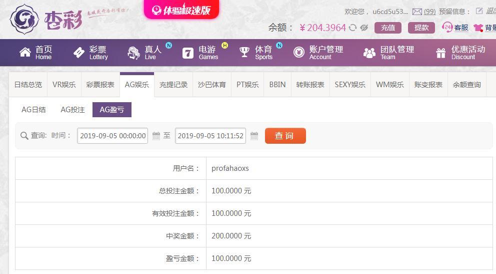 [|赢单奖励] 9月5日杏彩赢100元 |