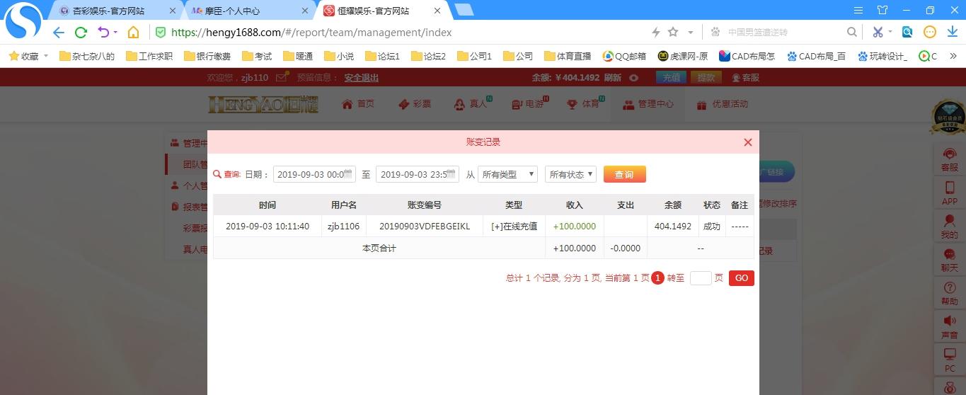 [|赢单奖励] 9月5日 恒耀真人盈利103元 |