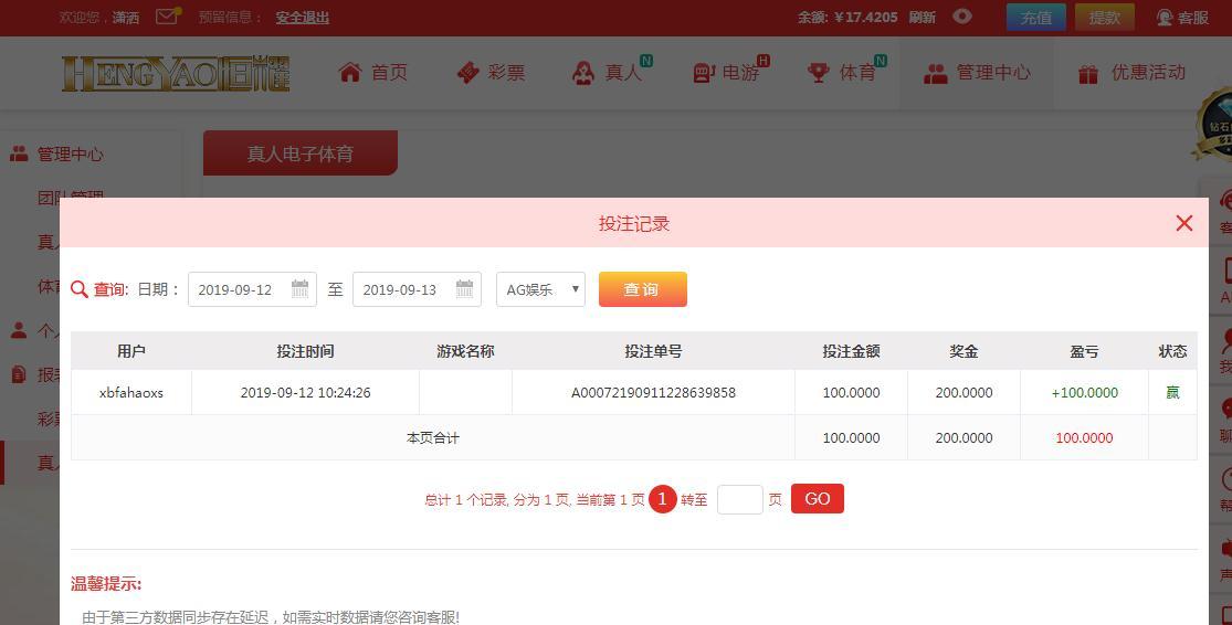 [|赢单奖励] 9月12日恒耀赢100元 |