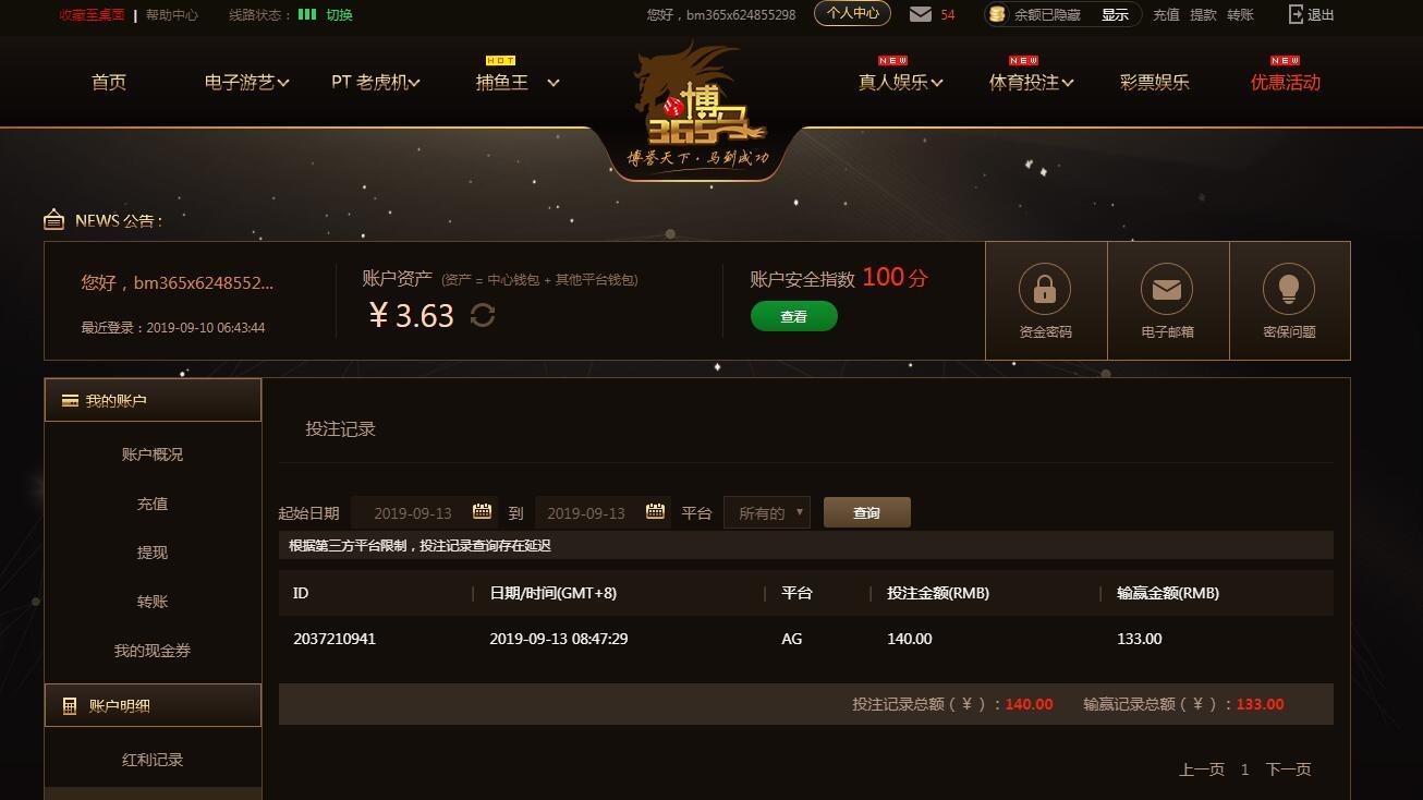 [|赢单奖励] 9月13日博马盈利134 |