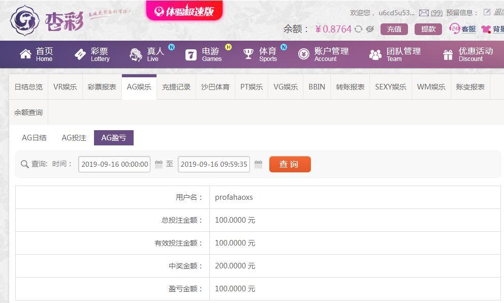 [|赢单奖励] 9月16日杏彩赢100元 |